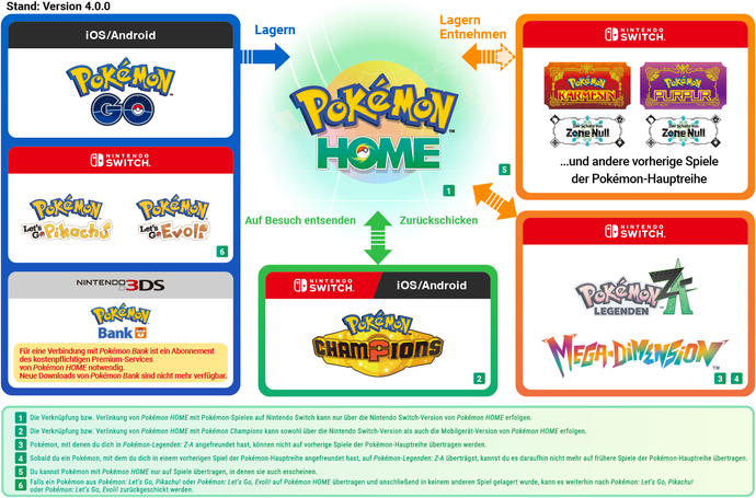 Eine Verlinkung mit Pokémon Karmesin und Pokémon Purpur ist nur in der Nintendo Switch-Version von Pokémon HOME möglich.