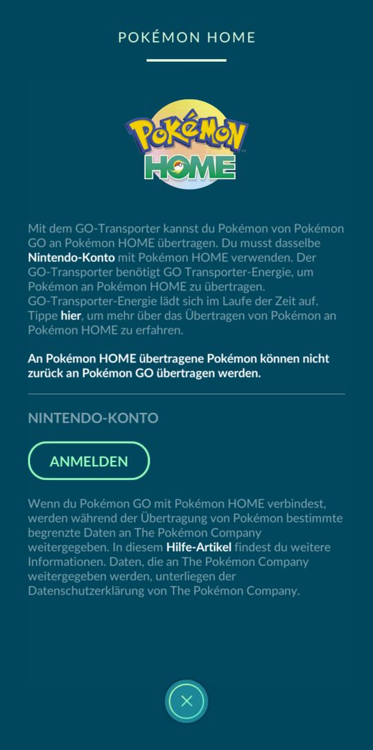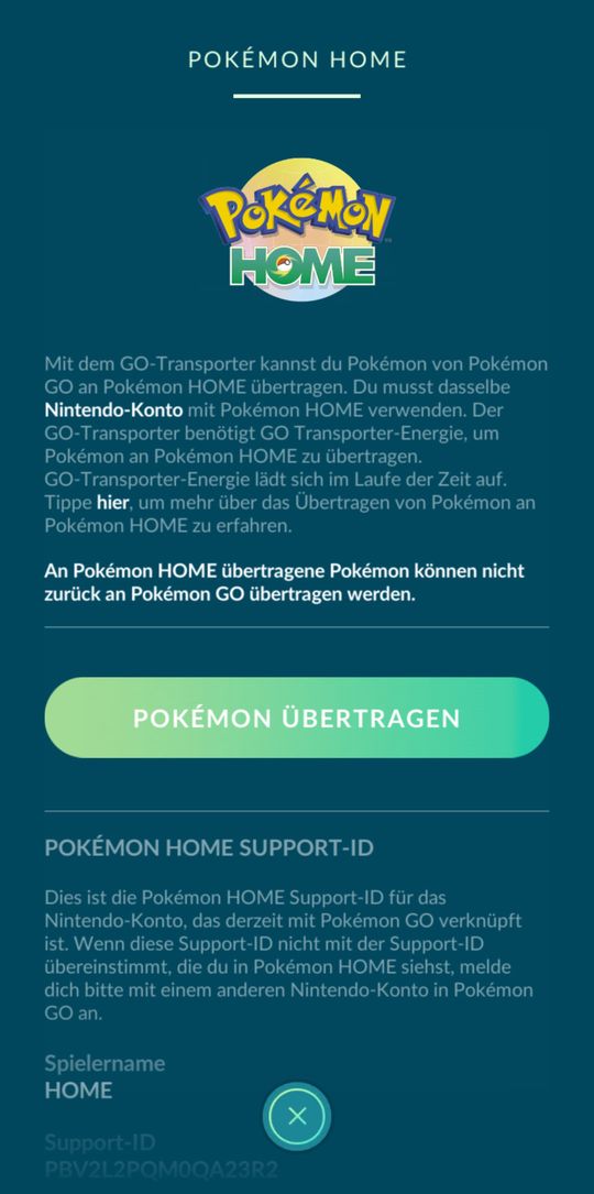 Beachte bitte, dass bestimmte besondere Pokémon nicht aus Pokémon GO auf Pokémon HOME übertragen werden können. Zudem können Pokémon, die aus Pokémon GO auf Pokémon HOME übertragen wurden, nicht nach Pokémon GO zurückgeschickt werden.