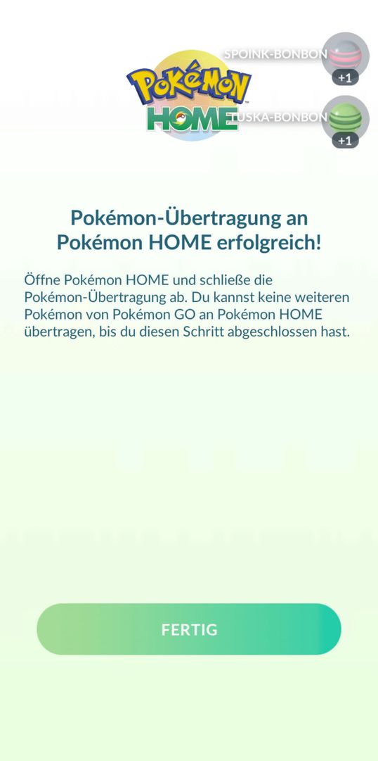 7. Du hast erfolgreich Pokémon aus Pokémon GO auf Pokémon HOME übertragen.