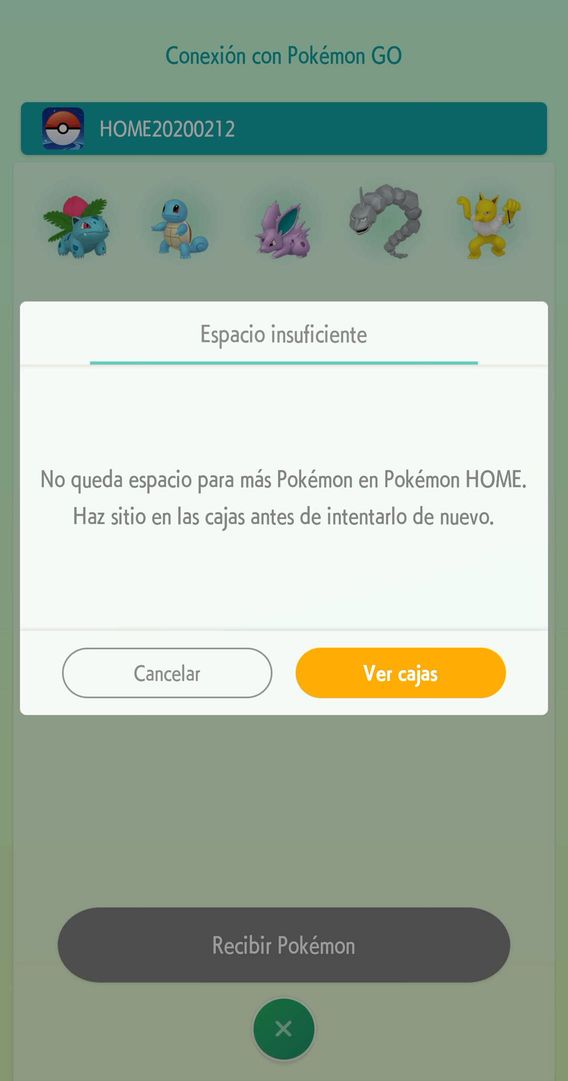 Si los hay, puedes recibirlos en tus cajas de Pokémon HOME. Si te quedan Pokémon por recibir, no podrás transferir más desde Pokémon GO.