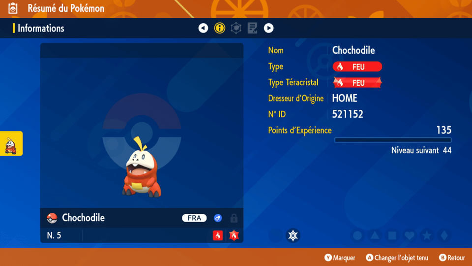 Recevez un cadeau spécial pour célébrer la compatibilité de Pokémon HOME avec Pokémon Écarlate et Pokémon Violet ! Après le tout premier transfert d’un Pokémon provenant de Pokémon Écarlate ou de Pokémon Violet vers Pokémon HOME, vous recevrez un Poussacha, un Chochodile et un Coiffeton dotés de leur talent caché dans les Cadeaux Mystère de la version mobile de Pokémon HOME. Emmenez-les à l’aventure avec vous à travers tout Paldea !