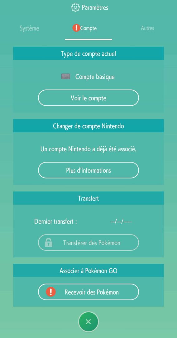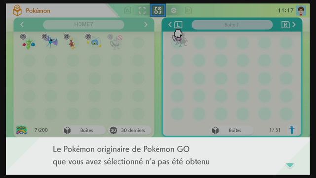 Si vous ne parvenez pas à les recevoir, assurez-vous d’avoir suffisamment d’espace disponible dans vos Boîtes (il se peut qu’elles soient pleines) puis essayez à nouveau via l’option « Connexion à Pokémon GO » à partir du menu « Paramètres ».