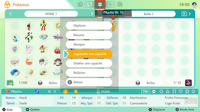 Depuis la version 3.0.0, lorsque vous transférez un Pokémon depuis Pokémon HOME vers un jeu synchronisé, vous avez la possibilité de lui réapprendre des capacités à partir de la liste des capacités qu’il a déjà apprises*. Ainsi, il peut se souvenir des capacités de votre choix avant d’être transféré hors de Pokémon HOME.