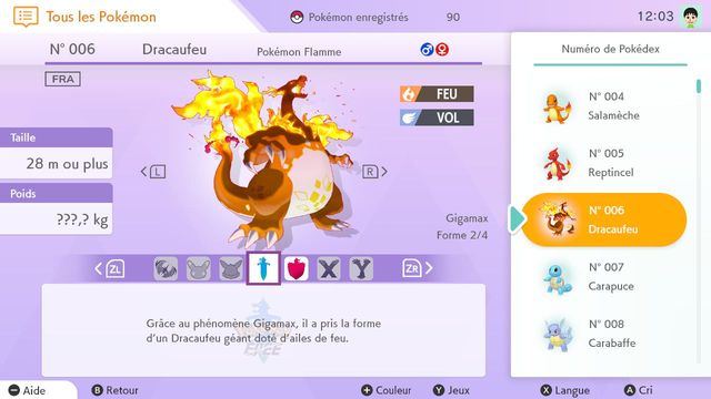 Lorsque vous déposez un Pokémon dans une Boîte Pokémon HOME, il est enregistré dans le Pokédex national. Les formes des Pokémon pouvant méga-évoluer ou se gigamaxer seront également enregistrées ! Le Pokédex national regroupe en un seul endroit les descriptions des Pokédex de différents jeux.