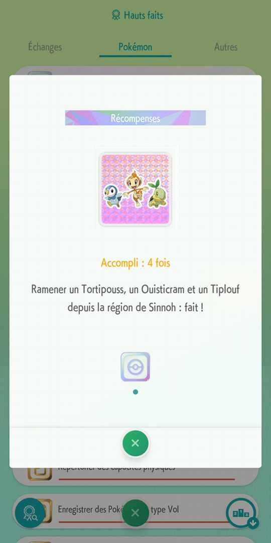 Cette fonctionnalité présente dans la version mobile vous permet de voir vos Pokémon par ordre chronologique de capture.