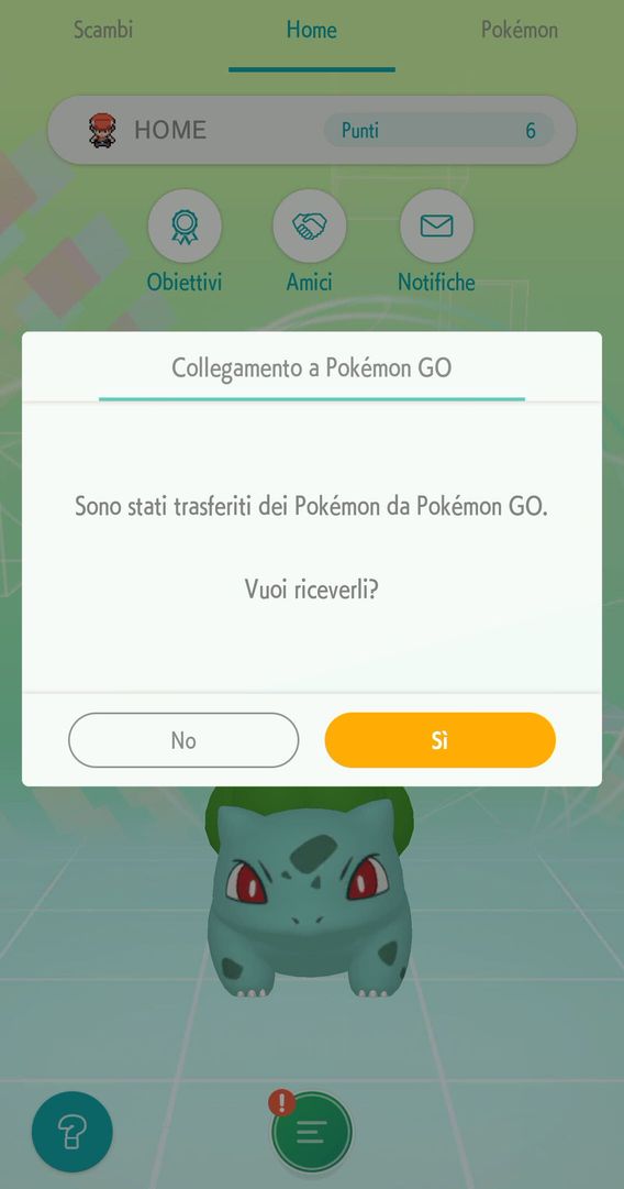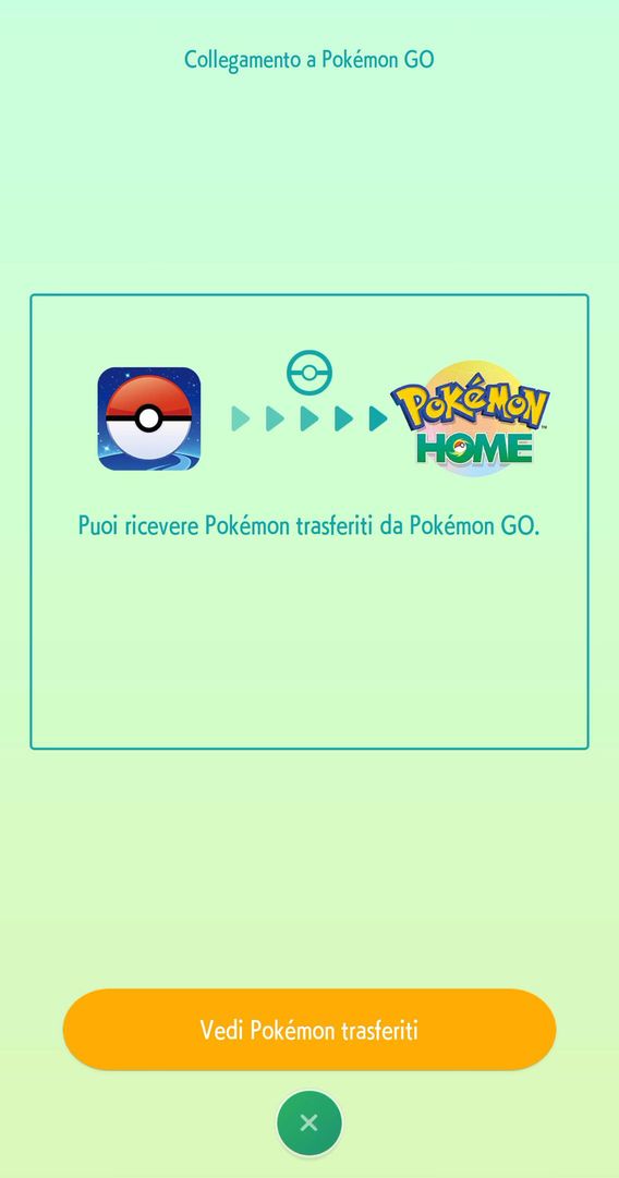 Se hai trasferito dei Pokémon da Pokémon GO, potrai riceverli in Pokémon HOME quando avvii l'applicazione.