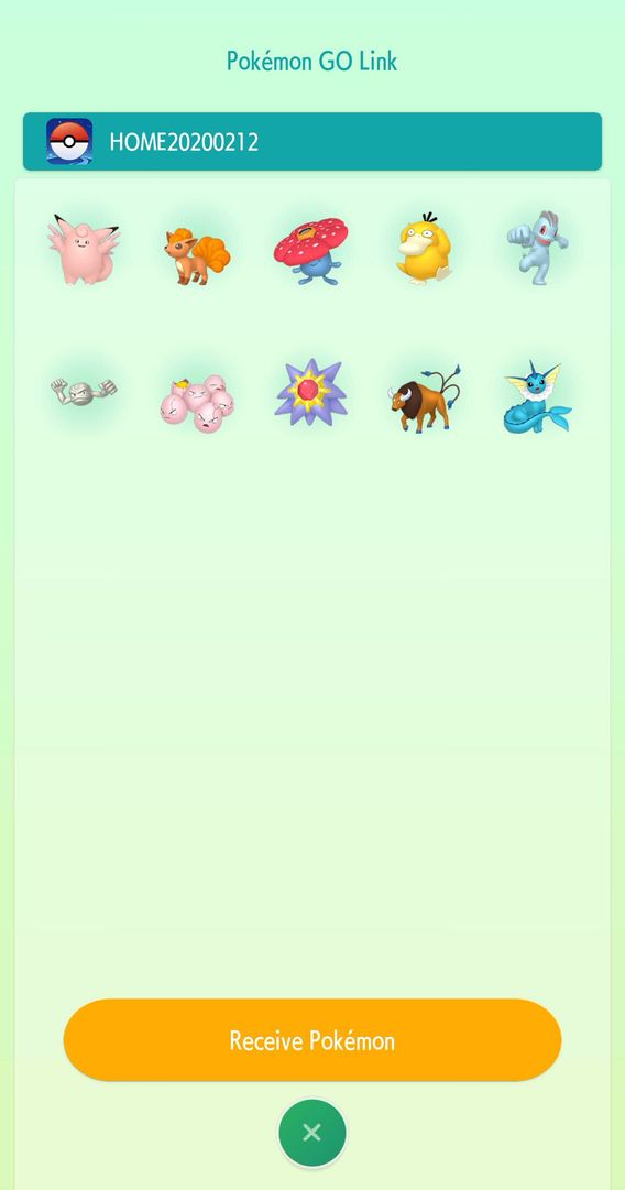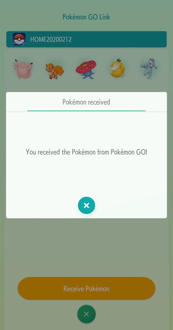 Als er Pokémon overgebracht zijn, kun je 'Receive' selecteren om ze in je Pokémon-boxen in Pokémon HOME te plaatsen. Als er nog Pokémon zijn die je niet ontvangen hebt, kun je geen andere Pokémon van Pokémon GO overbrengen.